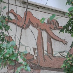 "Fürdőzők-sgraffito" c. alkotás fotói
