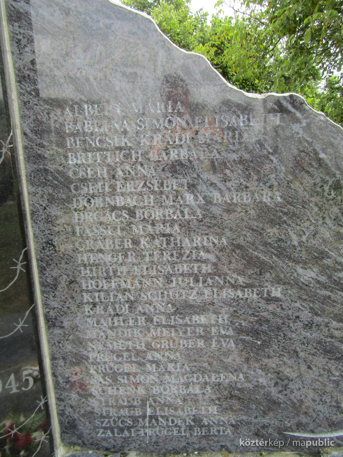 "A Simonyiak Háza udvarán 2008-ban állították az 59 nevet tartalmazó svéd gránit emlékművet az elhurcoltak, a 13 kopjafát pedig az elhunytak emlékére. A kompozíció Szívós László helybéli kőfaragó és Brittich Erzsébet képzőművész-költő alkotása."
