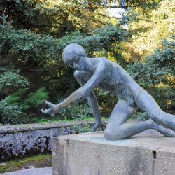 Nehéz a dolga a fiúknak, a medencében jelenleg sem hal, sem víz. Itt-ott egy kis moha már kezdi birtokba venni és tűlevelek kezdenek benne összegyűlni, de egyáltalán nincs rossz és nagyon elhanyagolt állapotban. Alkotói szignóra és évszámra sem a talapzaton, sem a fiúkon nem bukkantam.