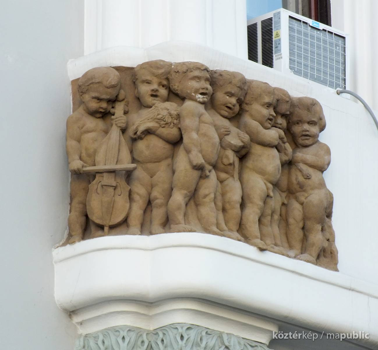 „Csak a kapu fölött kidomborodó zárt erkélyablak könyöklője alatt indul a szögletekből a közép felé egy-egy kis puttifríz. De beleolvad a kőfelületbe és belevész a levélornamensbe.” [2] [3]