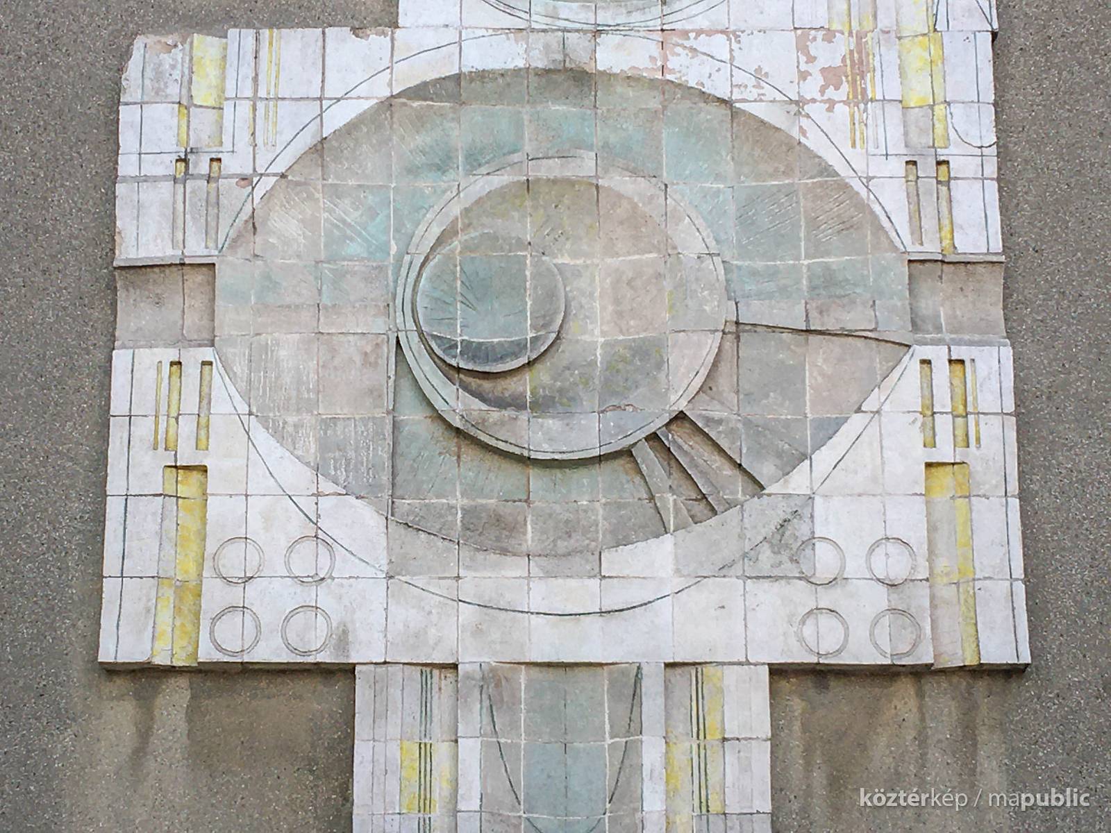 Nemrég egyik felhasználótársunk, Sila töltött fel egy képet róla a fórumba, ahol érdeklődött az alkotó kilétét illetően. Megdobbant a szívem, rögtön felismertem a muráliát a stílus alapján. Ez az, ezt kerestem! Sila megtalálta, amit nekem nem sikerült. Egyből felismerhető az alkotó kiléte, egyértelműen Majoros János keze munkáját dicséri. A nonfiguratív színes festett plasztikus samottkompozíció (így van megnevezve az életrajzban) első ránézésre legalább 20 m2 nagyságú. Hogy mit is ábrázol pontosan? Kicsit nehéz lenne megmondani, de az alsó részen látható "szem" több muráliáján is megjelenik a keramikusnak. A kompozíció felső része sajnos már sérült, az idő vasfoga dolgozik...