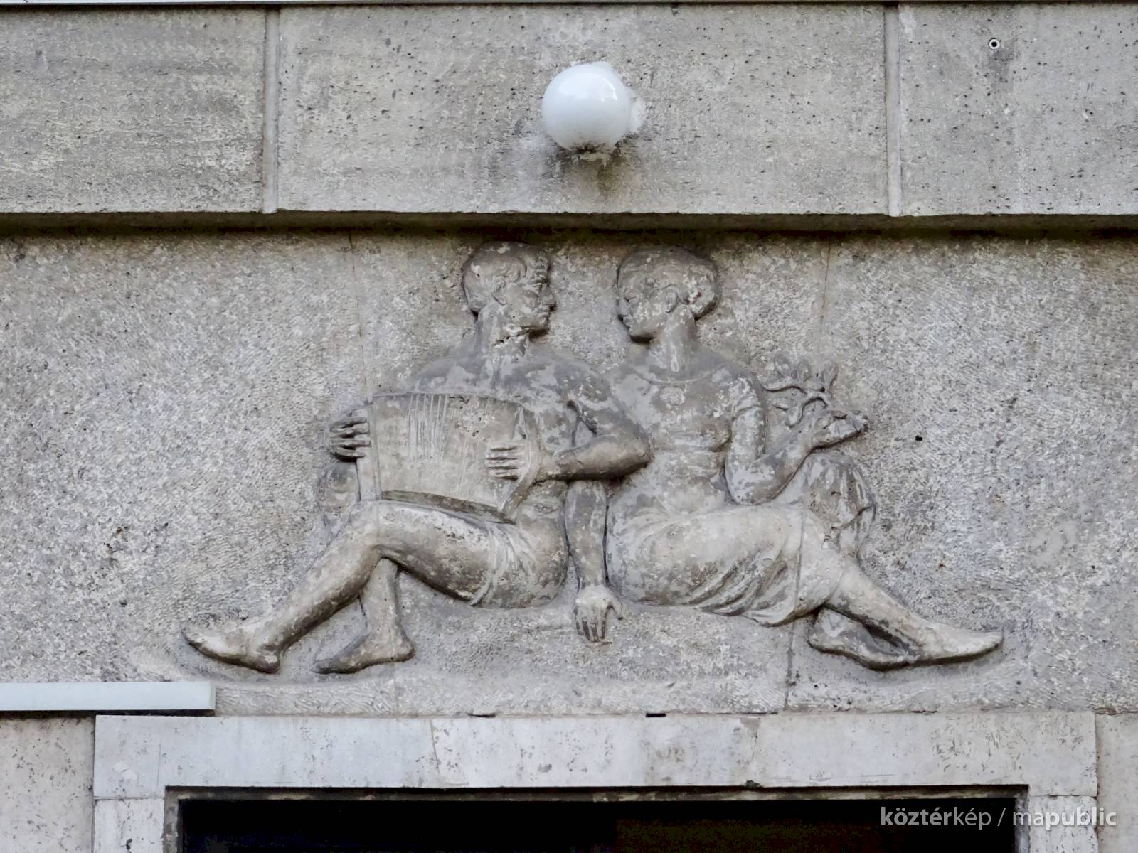 Itt, a Kerepesi út 80e. jelzésű épület udvari kijárataként funkcionáló kapu felett egy egyedi művet láthatunk. Egy férfi és egy nő idilli együttléte – feltehetően a természet közelségében, mint ahogy az udvar maga is kis liget a városon belül. Nyáridő van, igazolja a pár öltözéke is. A rövidnadrágos férfi harmonikázik, a lenge ruhát viselő, haját kis kontyba összefogó lány kezében virágot tart. A két ember egymás felé fordul, meggyőződésem, énekelnek is...mindenről megfeledkezve, környezet kizárva.