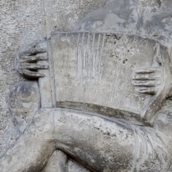 Konrád Sándor az egyike a legaktívabb szobrászoknak, akik feladatot vállaltak/kaptak az új lakótelep díszítésénél. "Harmonikázó férfi és kezében virágot tartó nő ülő alakja" – olvasom; az alkotásra egyértelműen illik a lexikonban elsőként olvasható mű címe. [2] Igaz, a készítés évét felülbíráltam, hiszen biztos, hogy a lakótelep építésének időszaka, ill. a további díszítmények készítésének évéhez igazodik.