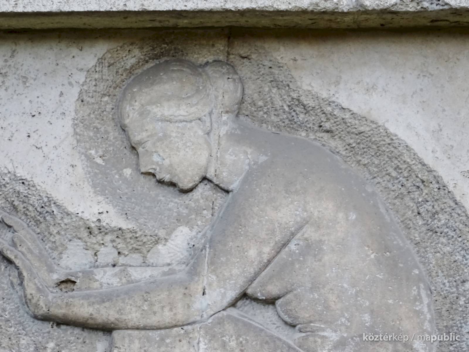 Még mindig a lakók által kerítéssel elzárt belső udvar kapui feletti domborművek között járunk. Az egyik jelölt ("Virágot ültetők") közelében, de nem közvetlen szomszédságában található az az udvari kijárat, ami felett a környék sok-sok kapudomborművéhez hasonló módon helyezték el ezt az alkotást.