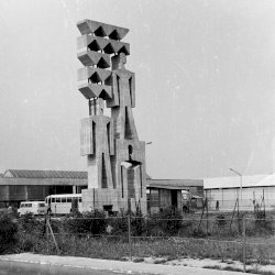 Kunt Ernő, a miskolci művésztelepen élő Munkácsy-díjas képzőművész monumentális beton plasztikát készít a miskolci házgyár bejáratához. A tizenegy méter magas, négy méter széles, robusztusan megformált alkotás három figurát ábrázol. A betonkolosszus kiöntéséhez szükséges faformát már elkészítették." [1]