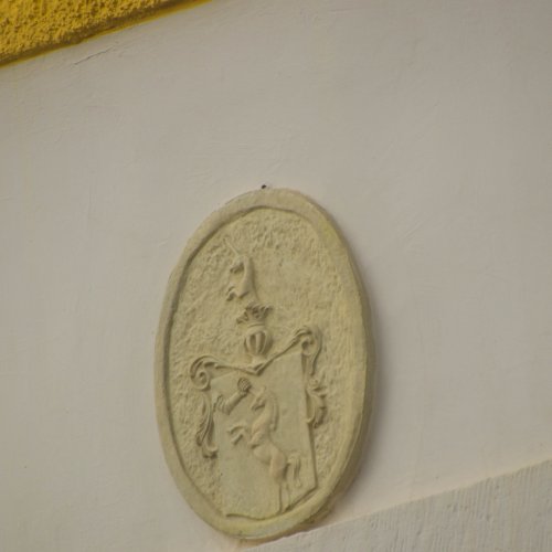 A déli homlokzat előtt két oszlop van, amelyek egy erkélyt támasztanak alá. Az emeleten az erkélyre kivezető ajtó feletti elliptikus mezőben valóban egy címer van. Azonban ez a címer nem a Tarányiaké.