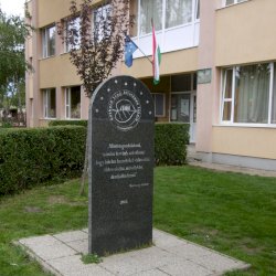 A iskola bejárata előtt van egy emlékkő. Egy keskeny gránitlap áll itt, felül félkörívesen lekerekítve. Közepére ezt a feliratot vésték: