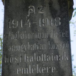 Alá vésték a 21 hősi halott nevét. Ennyit ír a "Hősi Emlék. Az I. világháború magyar vonatkozású köztéri, valamint közösségi hősi emlékeinek lezárt és nem frissített adatbázisa" is.