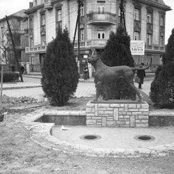 A vízmedence és a posztamens maradt a helyszínen, erre helyezték rá 1973-ban Petri Lajos Bánat című szobrát.