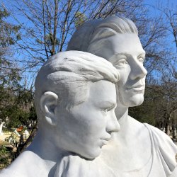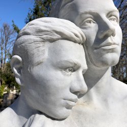 A síremléket díszítő kétalakos fehérmárvány kompozíciót, amin egy fiú látható az anyjának vállára hajtott fejjel Erős Apolka és Baráz Tamás szobrászok készítették. Alul látható egy kis dombormű is, amin virágok vannak.
