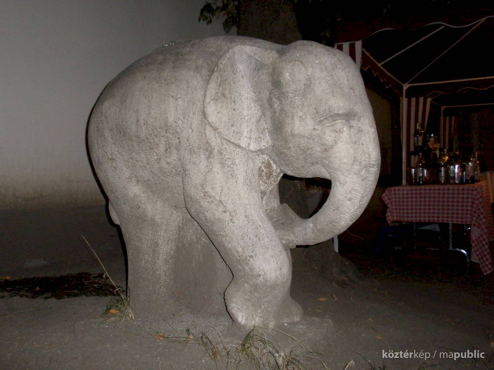 A Magyar Nemzet 1965. júliusában beszámolt róla, hogy Kutas László szobrászművész a Budapesti Pénzjegynyomda óvodája számára "Elefánt" kútfigurát készített kőből.[1] A Kortárs Magyar Művészeti Lexikonban elérhető szócikkben található információk alapján valóban elkészült a szobor 1965-ben, azonban később áthelyezésre került, valószínűleg a Pénzjegynyomda Római parti üdülőjébe, ahol a műlaphoz csatolt fénykép készült.