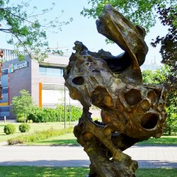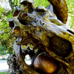 Ezt az alkotást nehezebben találtam meg a fák között, lombokkal takart helyén. Szűk környezete a természet. Csupa lendület, mozgalmasság, amit átvettem. alig tudtam abbahagyni a fotózást-keringést körülötte.