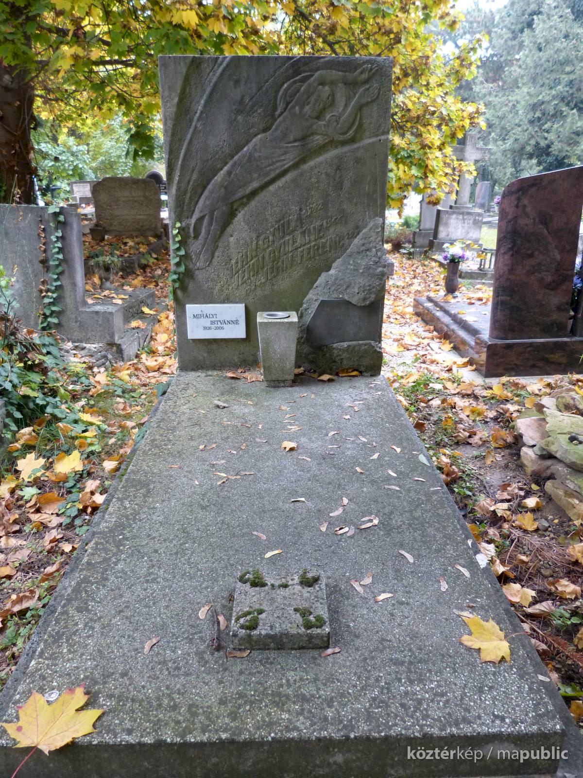 Jéhn Gyula síremlékét 1971-ben készítette Metky Ödön, az oldalon olvasható felirat szerint.[1] A dombormű a feltámadt Krisztust ábrázolja. Az 1928-tól aktív és 1985-ben elhunyt Metky legismertebb alkotásai a gellérthegyi Jubileumi parkba készített nagyméretű kőamforák.[2] 2020.10.29. 09:17