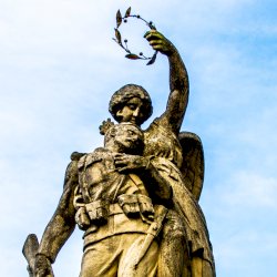 Az ismert első világháborús emlékművektől eltérő ábrázolást látunk.