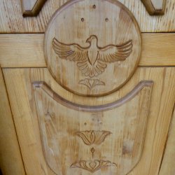 A kapun megjelennek a görögkatolikus vallásra jellemző motívumok, úgy mint az ókeresztény Krisztus-kereszt, a szőlő, a bor, a kenyér, a pásztorbot, a béke és a szentlélek jeleként a galamb, a bőség jeleként pedig a halak alakja is.