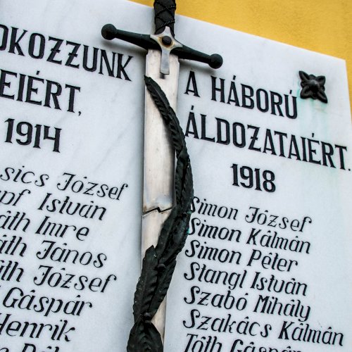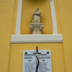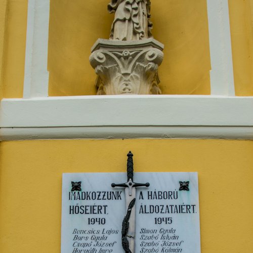 A templom történetéről szóló írás említi, hogy az I. és II. világháború áldozatainak emléktábláit 1989-ben helyezték el a Keresztelő Szent János feje vétele titulusú templom homlokzatán.