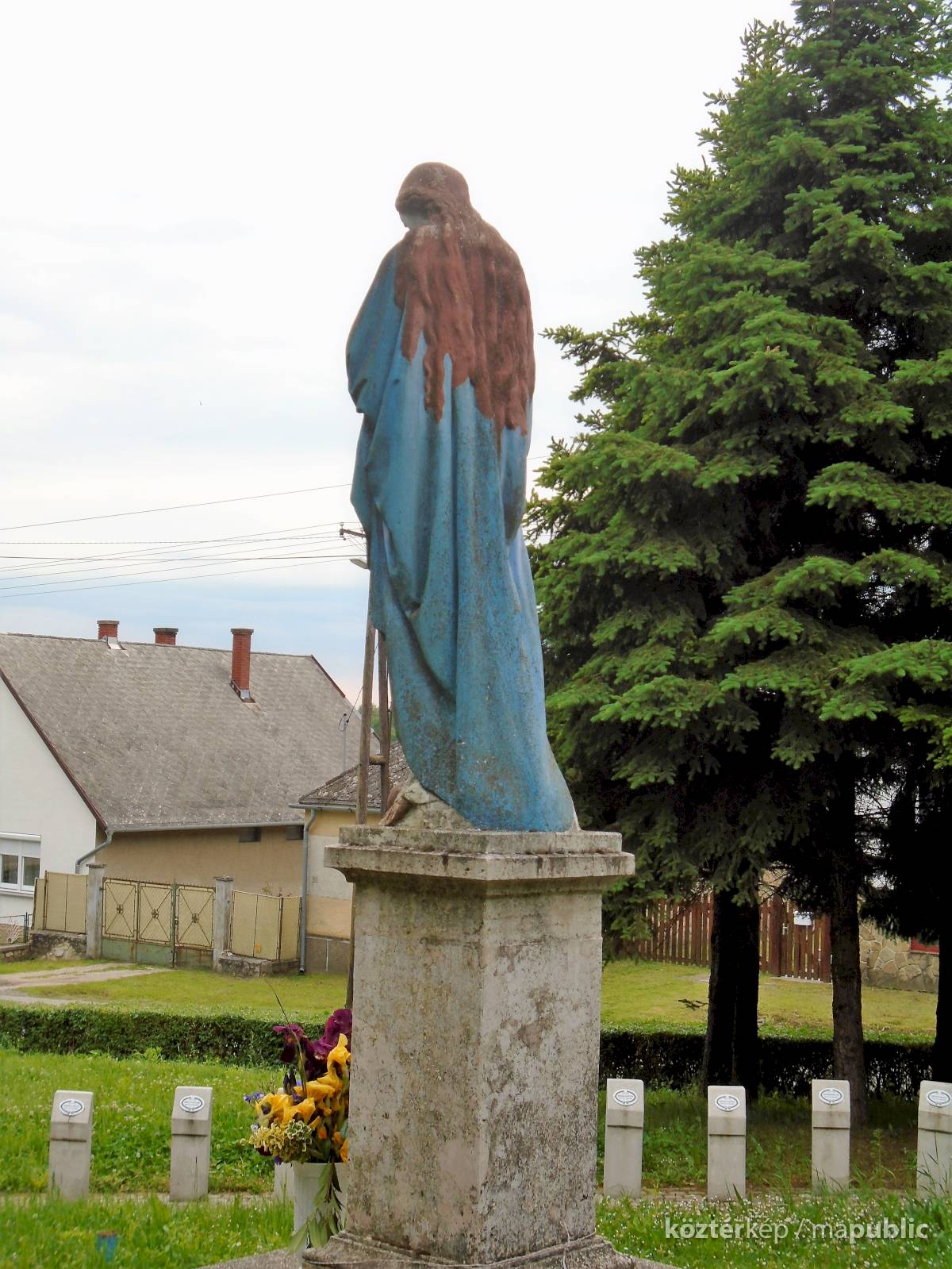 Lesencetomaj földrajzi neveinek jegyzékében ezt olvashatjuk a Hősök teréről: "A tér közepén Mária-szobor áll. Egy tragikusan elhunyt leány emlékére minden este mécsest égetnek. Itt vannak a hősi halottak emlékére állított fenyőfák és emléktáblák." [2]