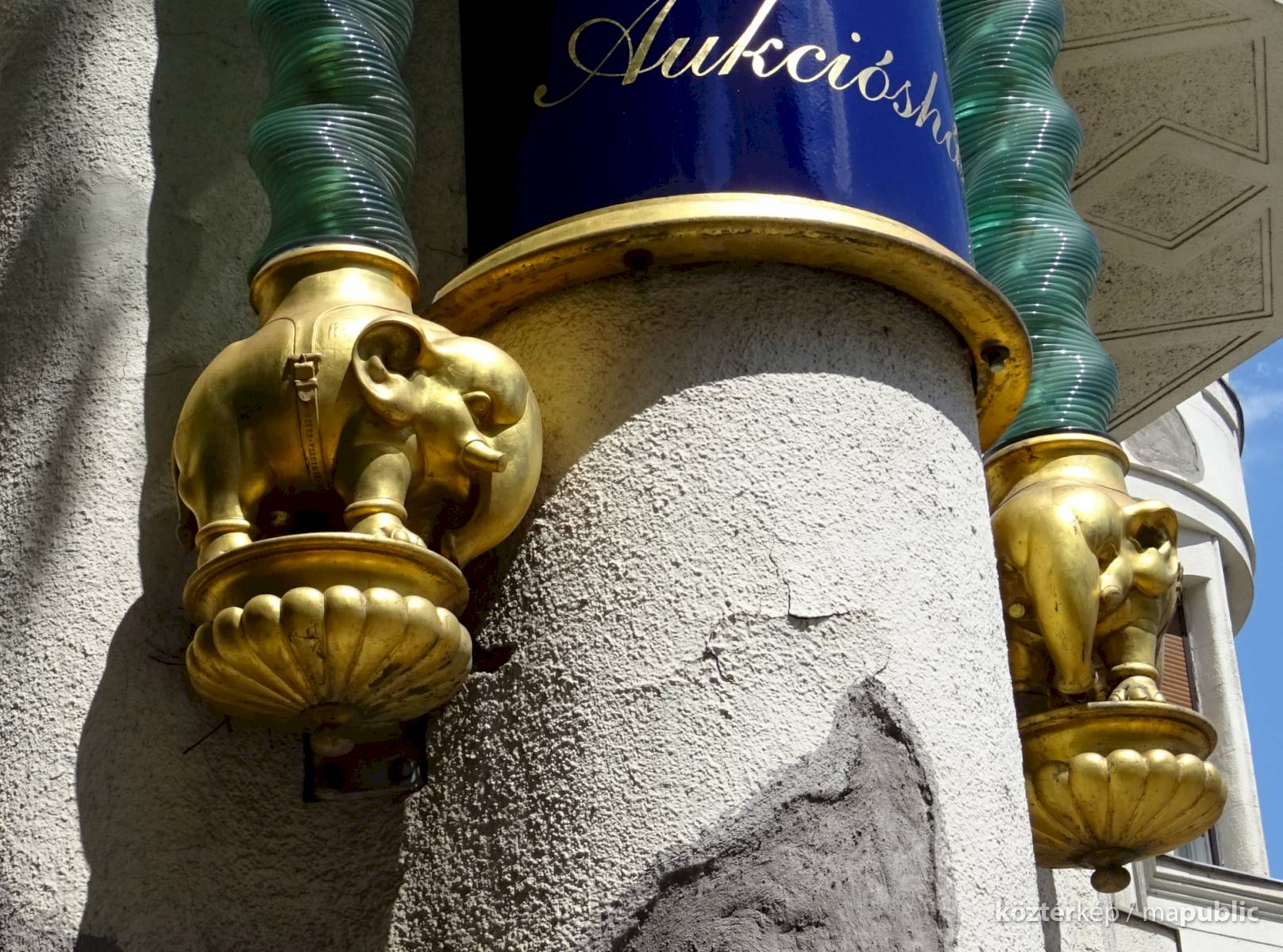 Most már megszólalt bennem a városvédő is, hiszen megdöbbentően málladozó környezetben láttam a csillogó-időtálló, sajátos anyagokat ötvöző cégért. Mondanám, egy aukciós ház, ha ad magára...