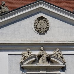 A dombormű önálló alkotásként született, feltételezhetően már néhány éve foglalja el "méltó helyét", belesimulva az egykori Nagypréposti palota homlokzatának barokk stílusú összképébe.