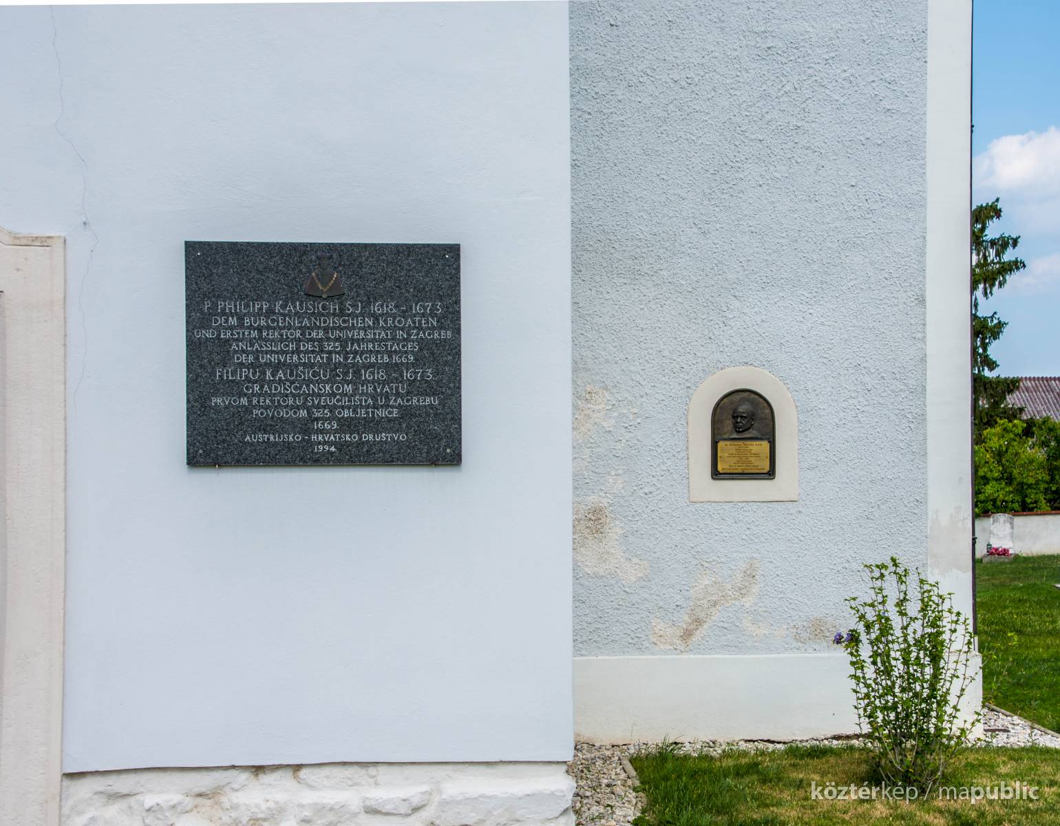 A Szent Péter és Pál tiszteletére épített templom falán a település szülöttjének Kruesz Károly Krizosztom (Völgyfalva, 1819. január 21. – Pannonhalma, 1885. január 11.) volt bencés főapátnak állítottak emléktáblát. [1]