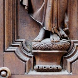 Időben viszont az alkotás későbbi, mint az épület maga, a dombormű alakjai "stílusában nem illenek az épület elkészültének korához".[1]
