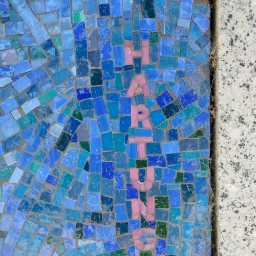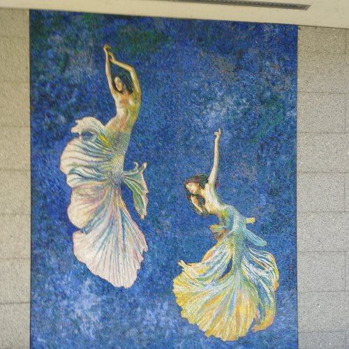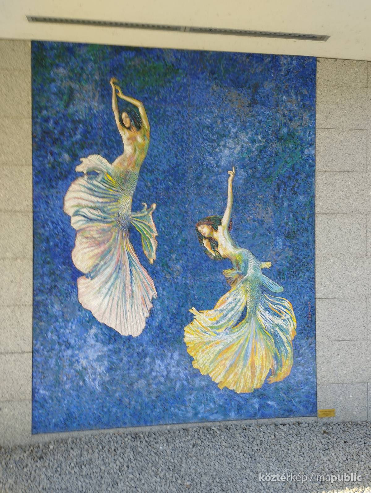 Az épület külső díszítésére a főbejárat melletti falra egy nagyméretű üvegmozaikot kapott. A kétalakos kompozíción vízben táncoló sellők láthatók, amit Hartung Sándor festőművész készített. A hableányok farokuszonyai olyanok mintha szoknyák lennének. Csodás egy alkotás!