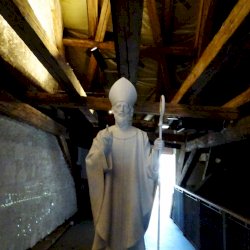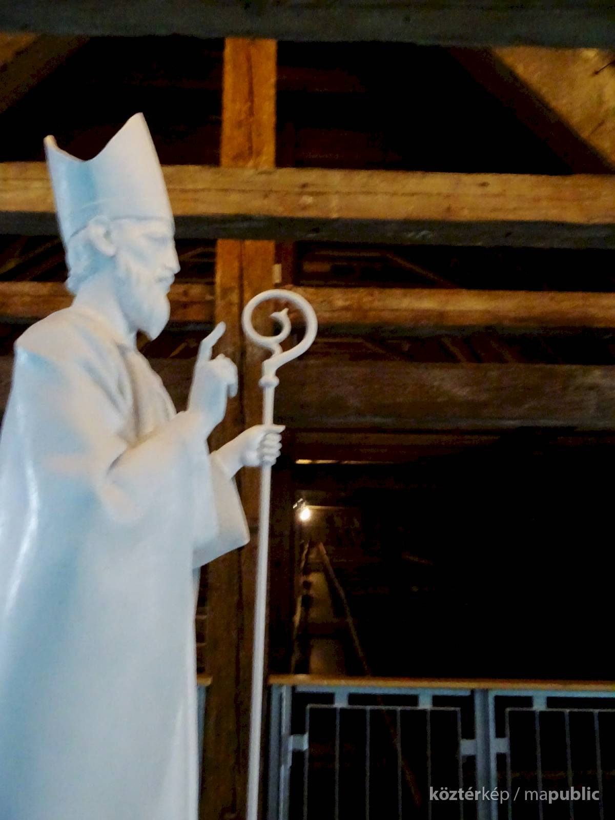 Az alkotó is szót kapott, a műhelymunka részleteiről beszélt. Több terv közül esett a választás a mostantól láthatóra, ahol a szent alakja azon a kordélyon áll, ami története szerint fennakadt a sziklatömbön.