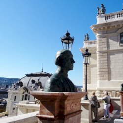 Ahogy olvastam róla, rámozdultam, de sajnos csalódás ért. A szobrok mögött délutáni fényorkán várt, a fényképek lehangolóak voltak. A Marsiglit-másolat műlapját megcsináltam, de másnap újra nekiindultam, de délelőtt. A helyzet közel ugyanaz. Nagy terület, a Csikós udvar felett (a szobrok mögött) csak kék ég, tükröződések, fotózhatatlan (azóta nem volt kedvem publikálni).