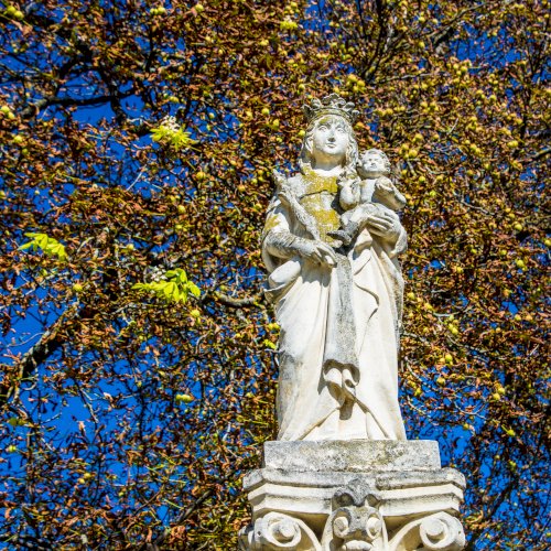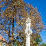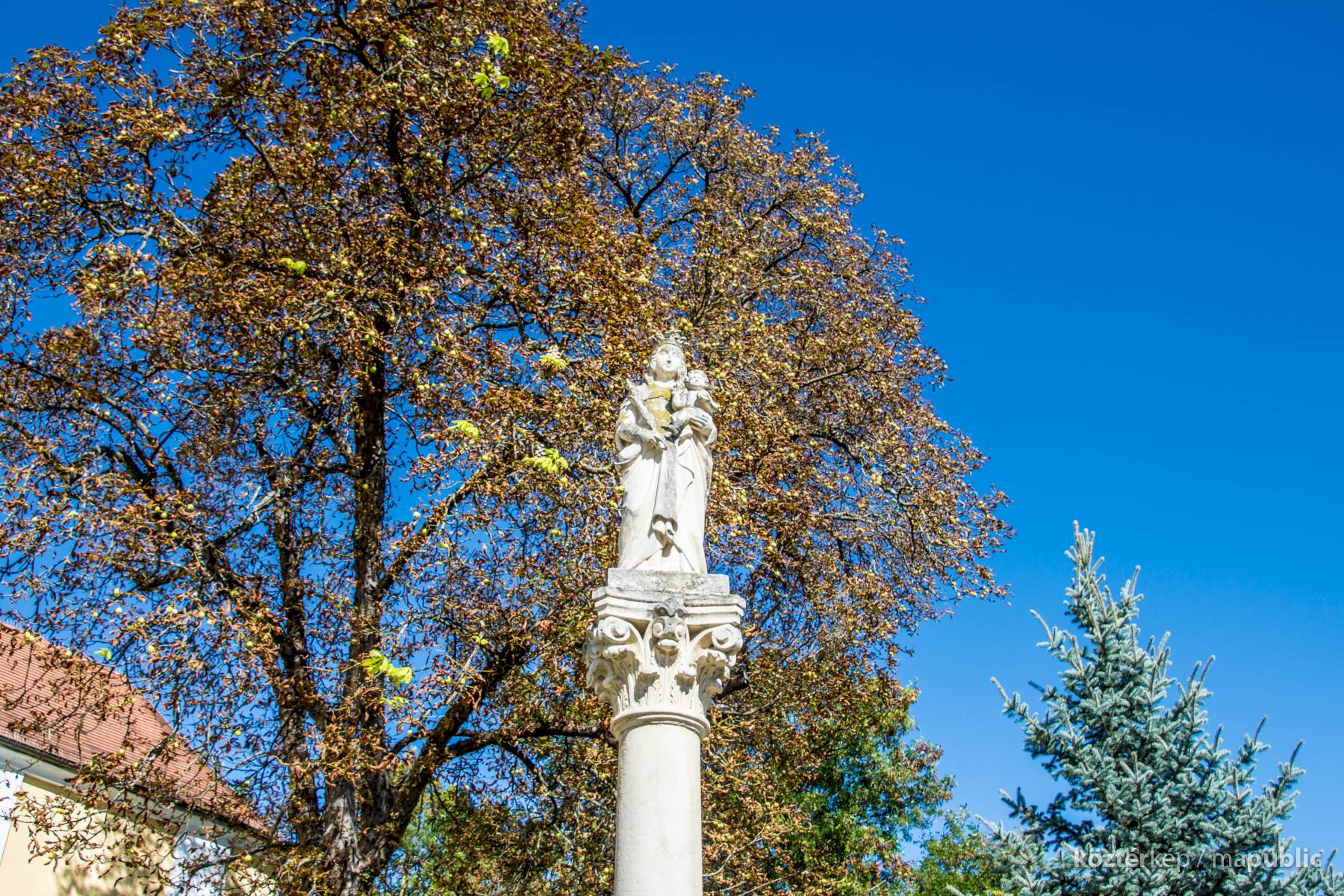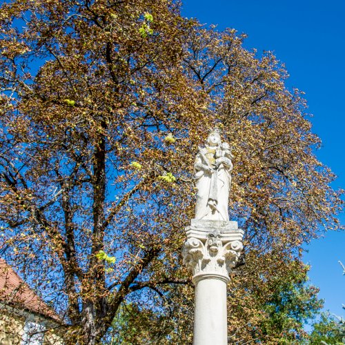 Szent Miklós püspök tiszteletére szentelt temploma (1722-1728) előtt áll a magas, korinthoszi fejezetű oszlopon Szűz Mária szobra, karjában a kisded Jézussal.[1]