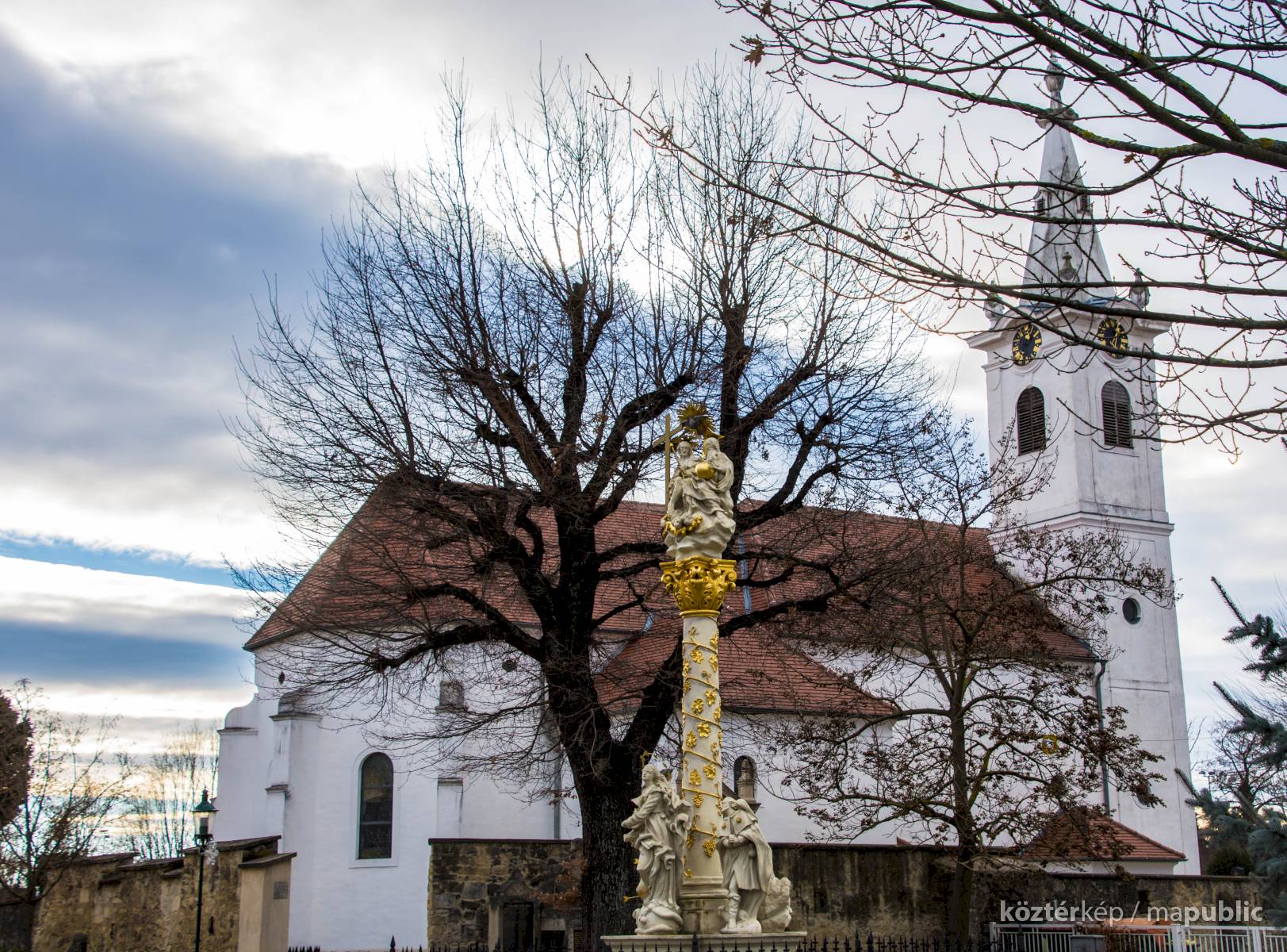 A Hősi emlékmű a Szent Kereszt Felmagasztalása-templom mellett található.