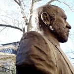 A kerítésen benézve Petri György (1945–2000) Kossuth- és József Attila-díjas költő, műfordító, újságíró mellszobrát értem el úgy, hogy a teleobjektívet csúcsra járattam. A készült képek így erősen fél oldalasak. Most is csak azért készítem el műlapot, mert nem akarok adósságot átvinni a jövő évre.