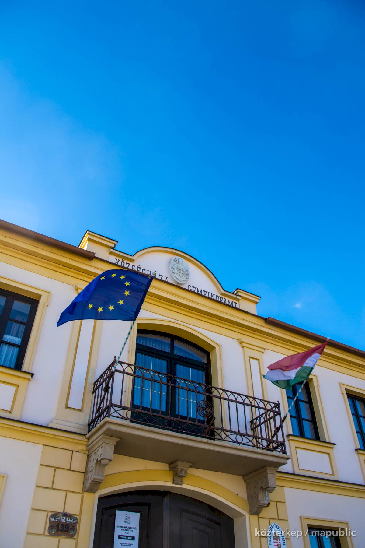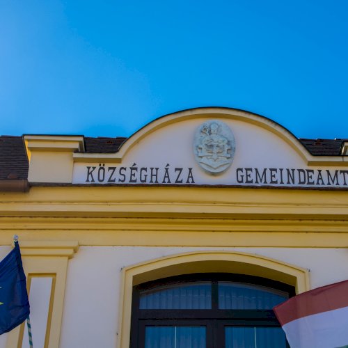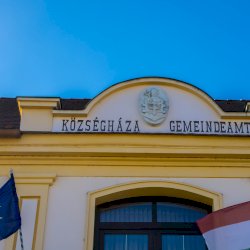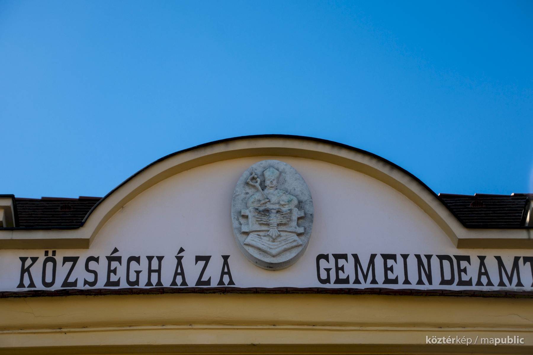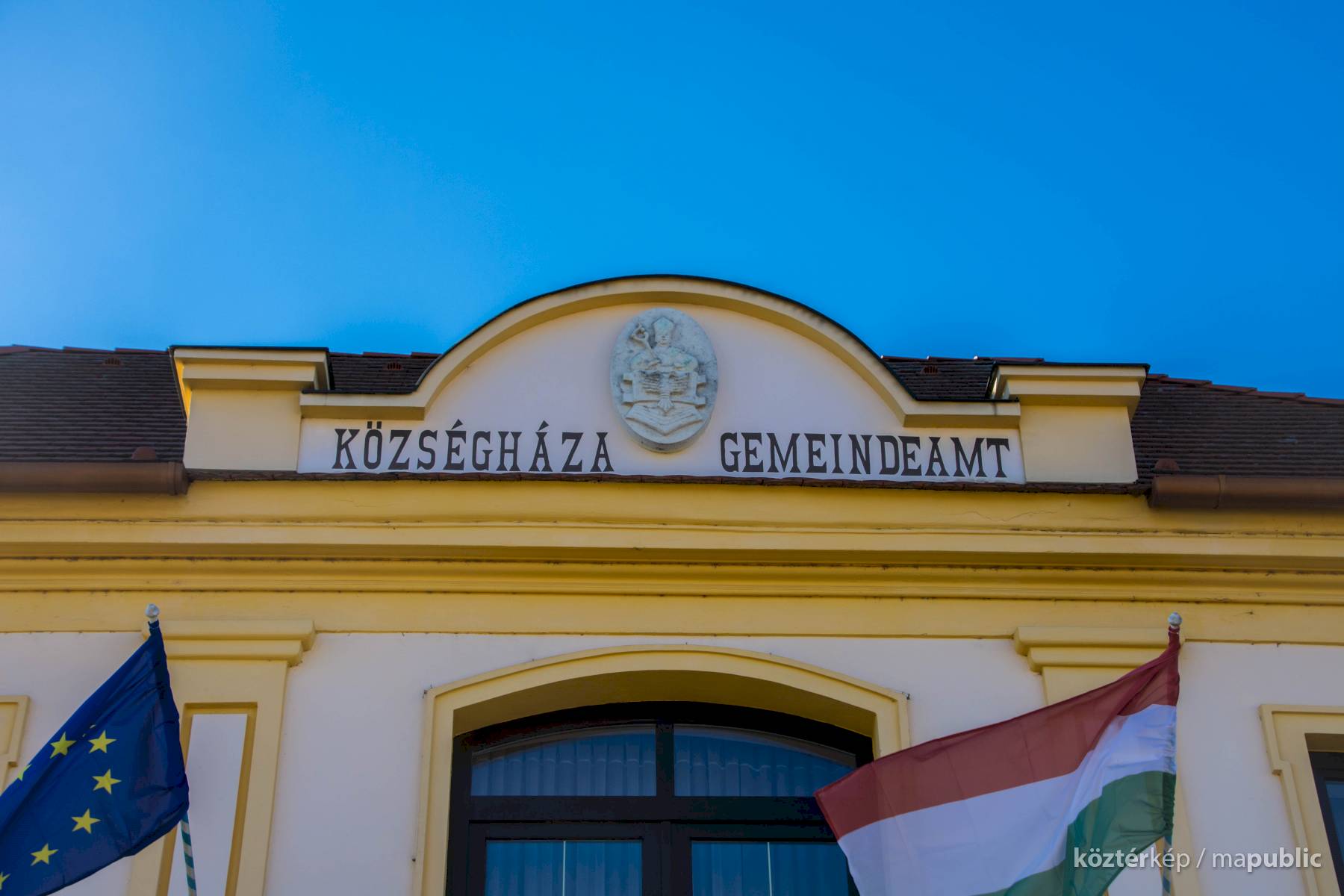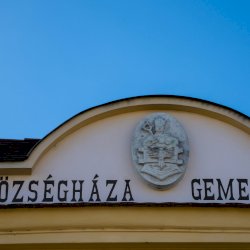 A címer a Községháza homlokzatán látható.