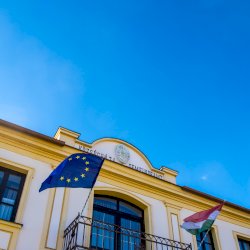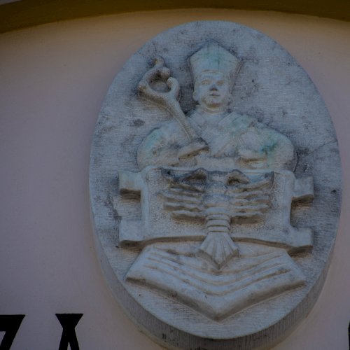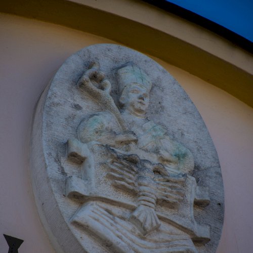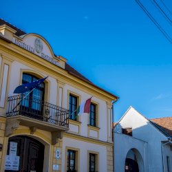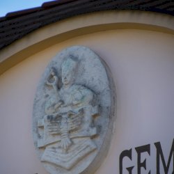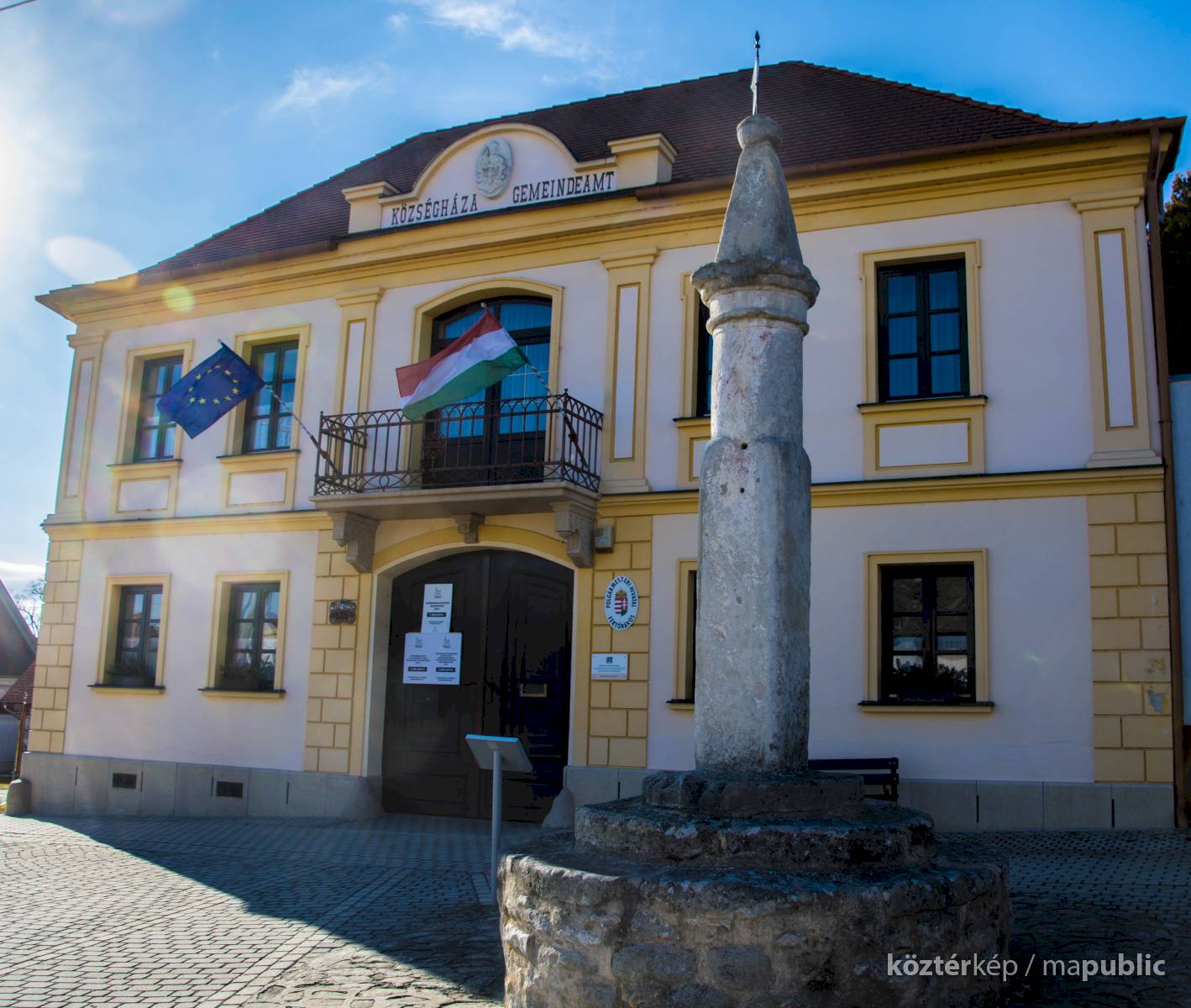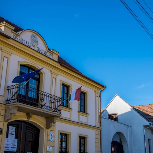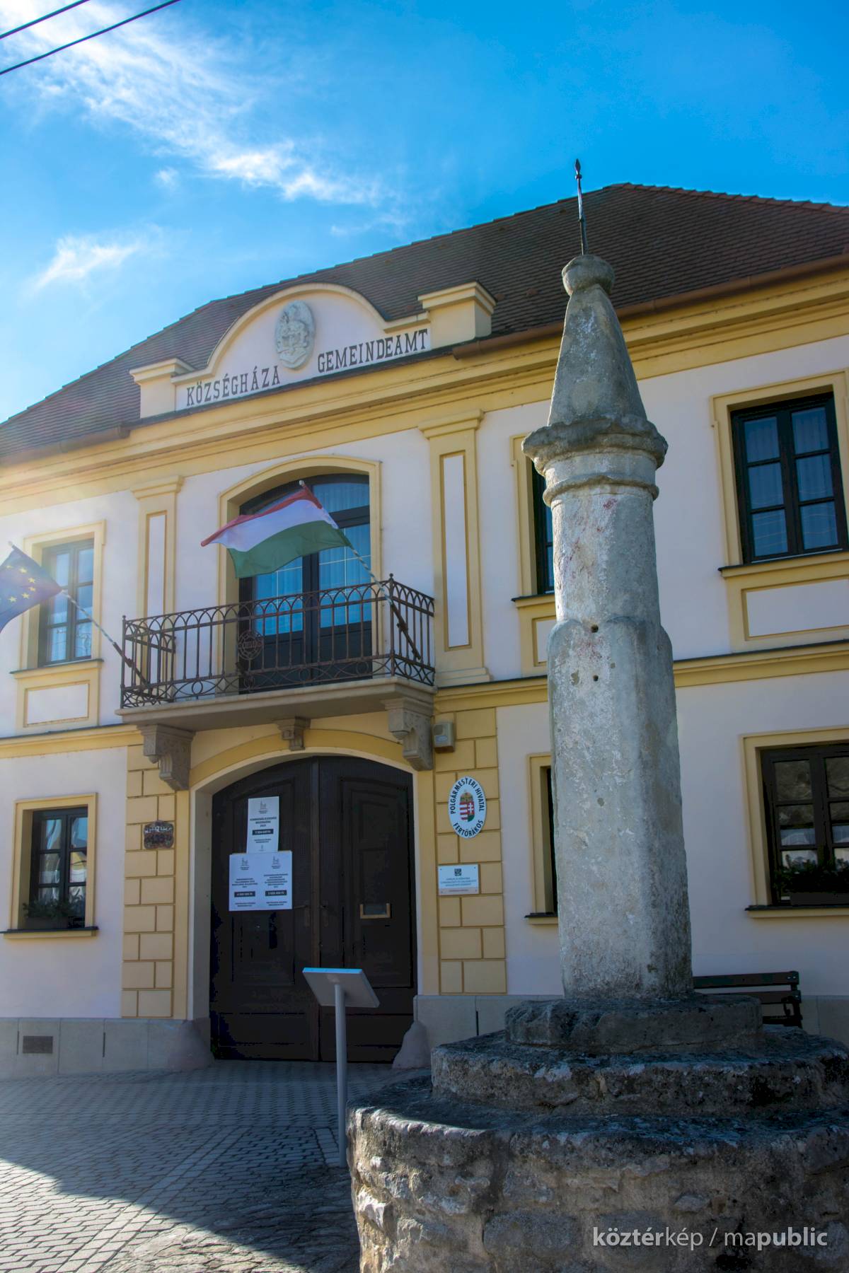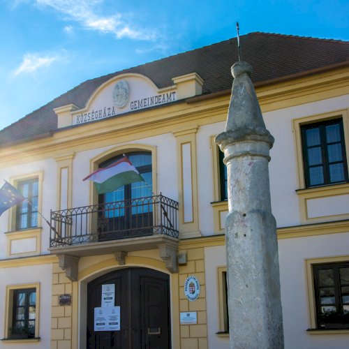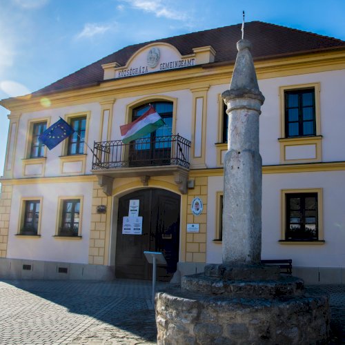 A címer a Községháza homlokzatán látható.