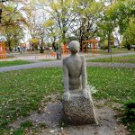 A művész honlapja szerint eredetileg a Dózsa György Kollégiumban (valószínűleg annak kertjében) állt. Arról nincs adat, mikor helyezték ide. Sajnos orrát letörték.