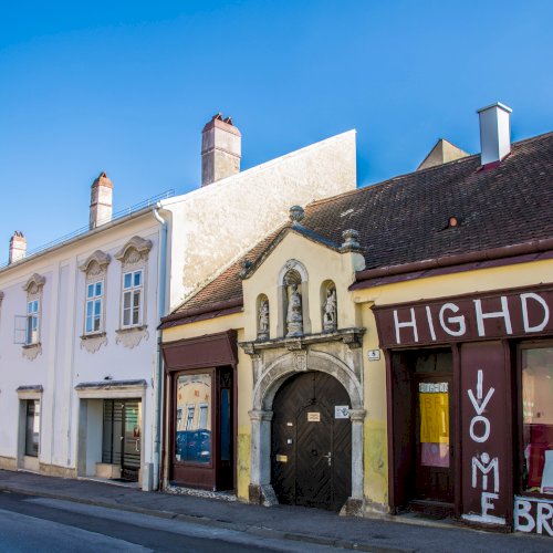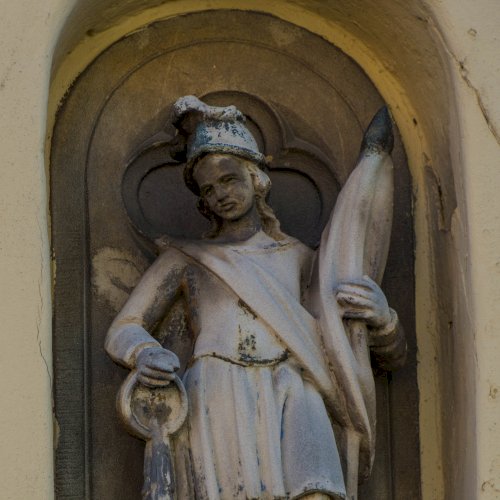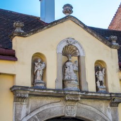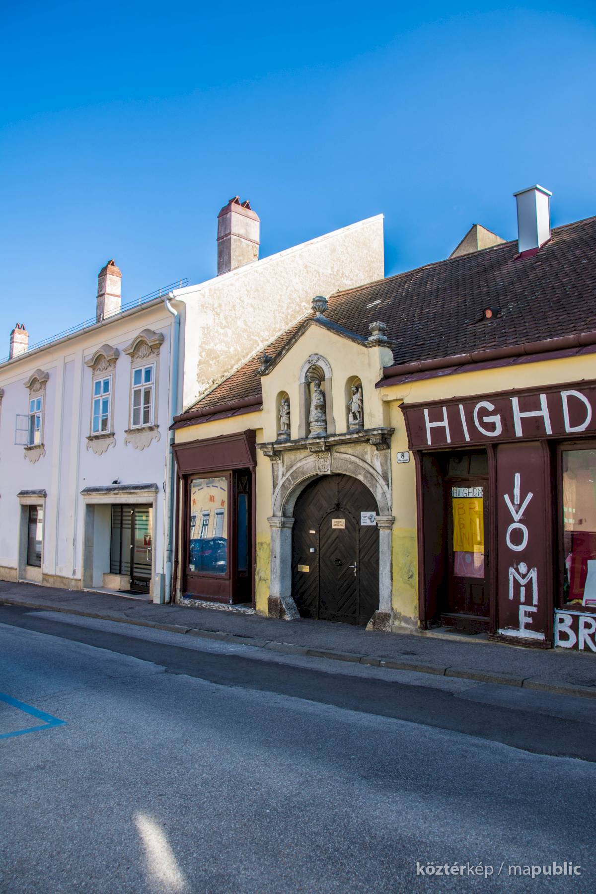 A Pfrargassén álló, 1779-ben épített ház homlokzati fülkéiben három szobor áll.