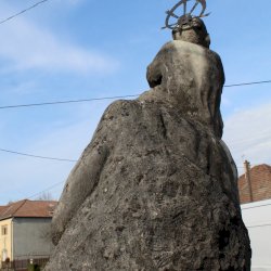 Az alkotó neve és a készítés éve kis táblán olvasható a szobor alsó részén.