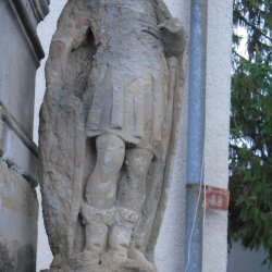 Jobbról és balról egy-egy mellékalak állt. Ezek közül a jobb oldali ma már erősen töredékes, de a lovagi ruházat, a pajzs és az alapítók névtöredéke alapján az vélhető, hogy Szent László szobra lehetett. A bal oladalon jól felismerhetően Szent Annát formázta meg a szobrász.