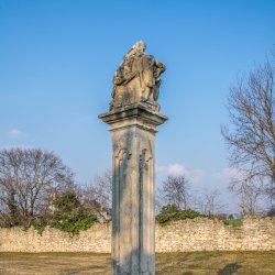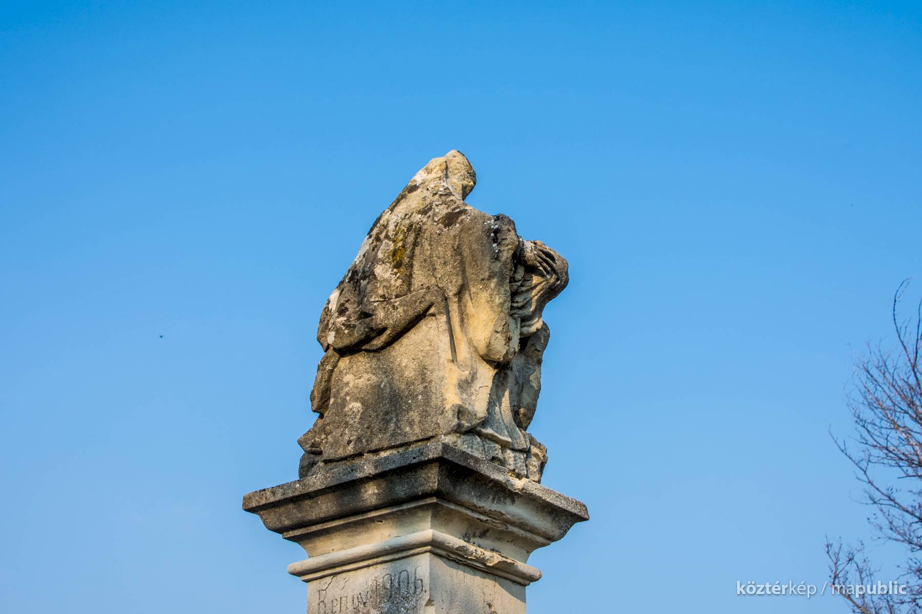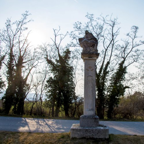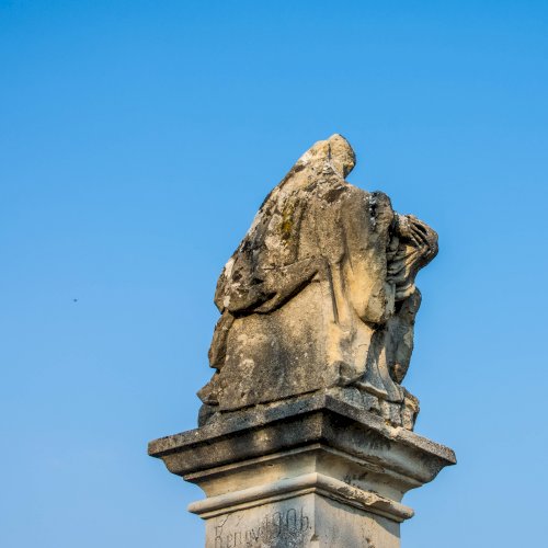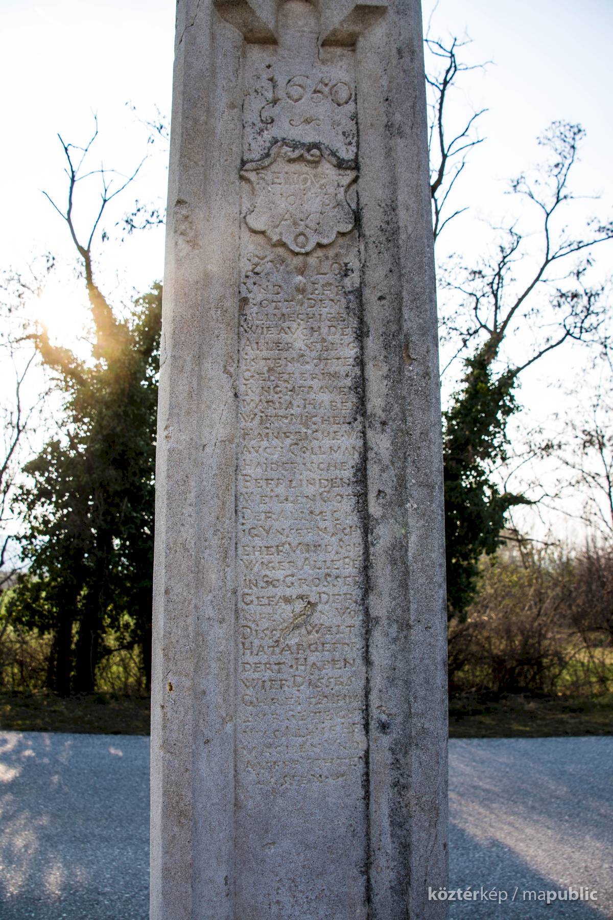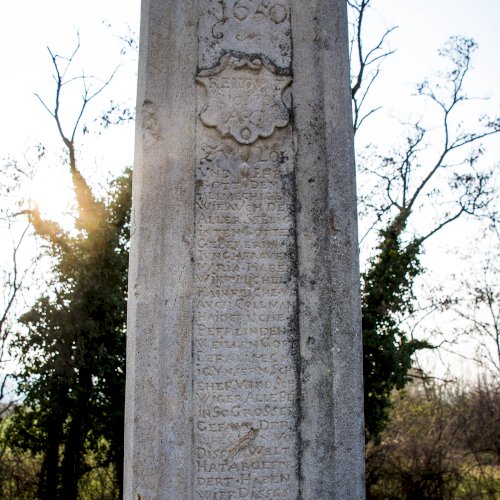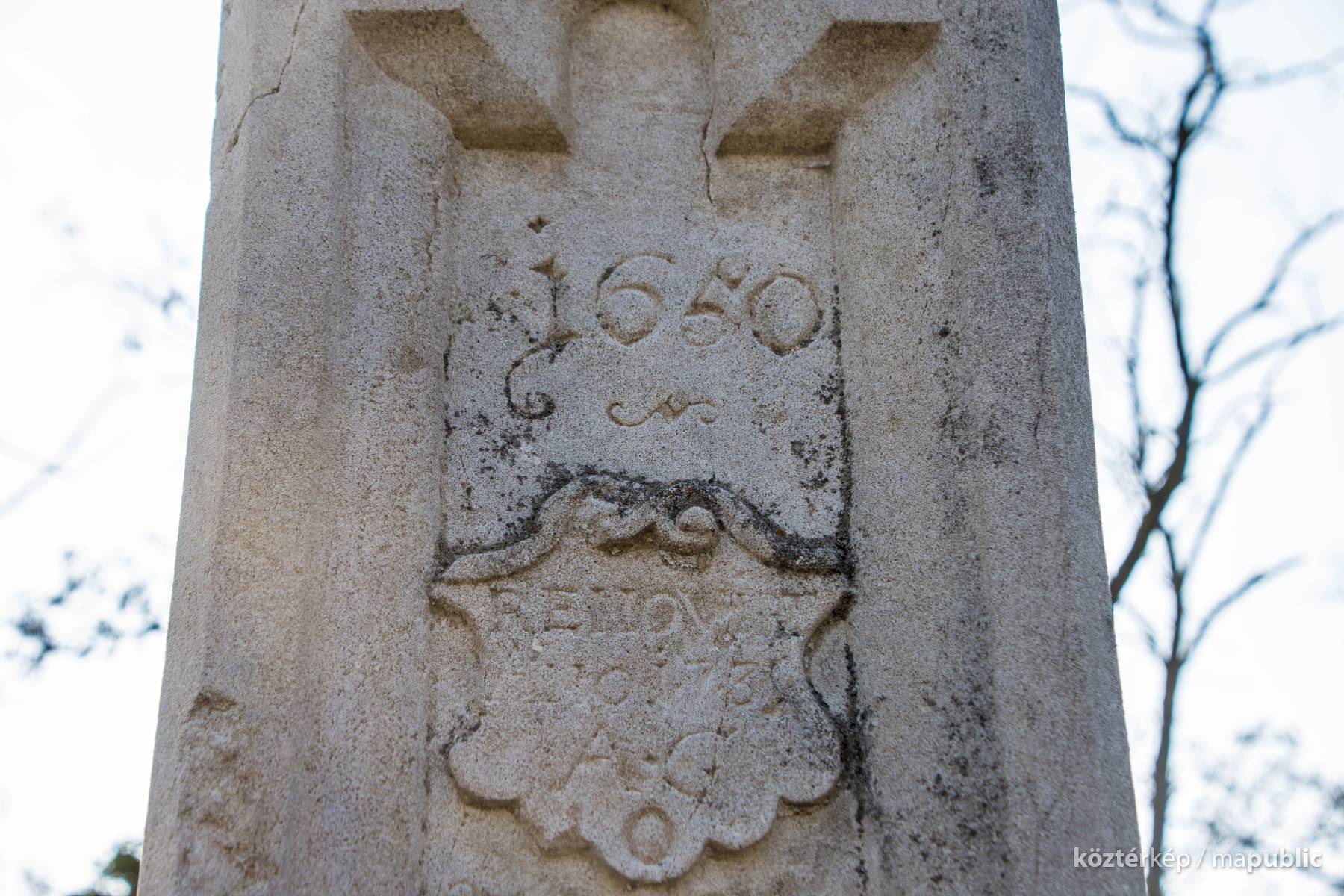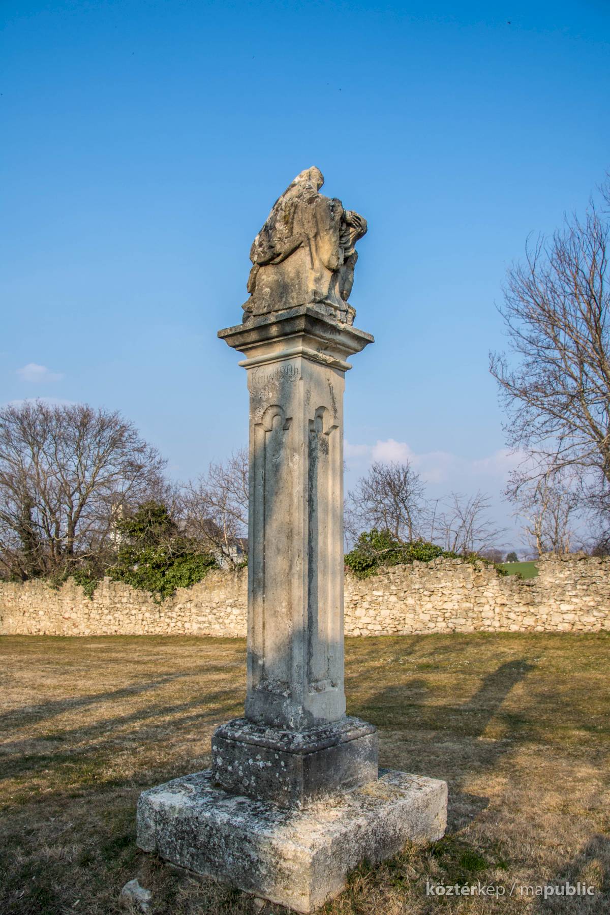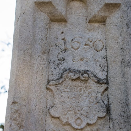 Oszlopán az állítatás ideje (1650), valamint restaurálásra vonatkozó évszám és monogram (1731 / A.G.) olvasható. Hátoldalán is restaurálásra vonatkozó évszám. (1906)