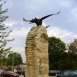 A Turulmadár egy kb. 4 méter magas talapzaton áll, lábában egy kardot tartva. A szárnyfesztáv több mint két méter.