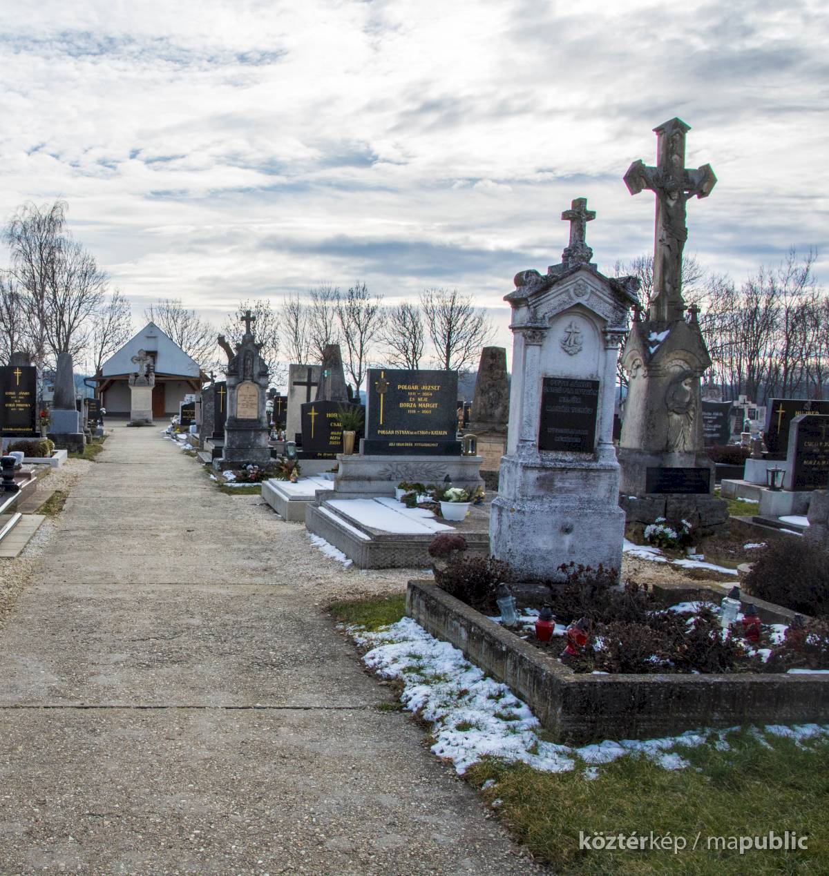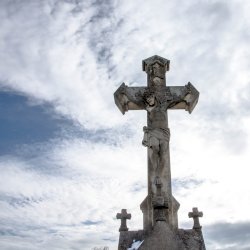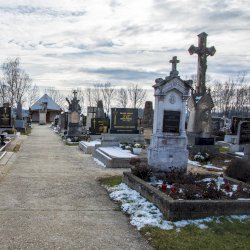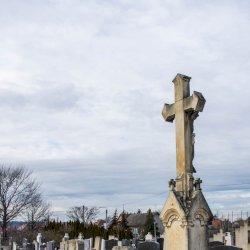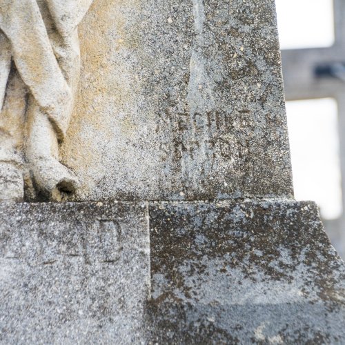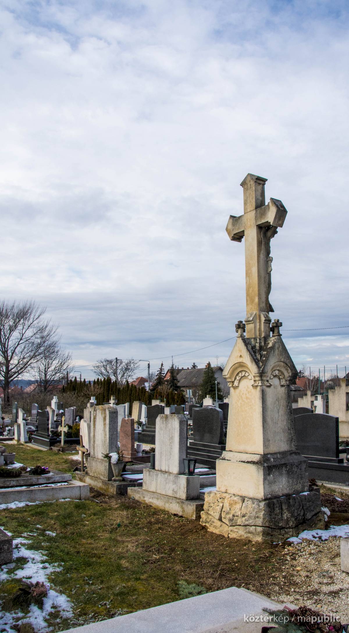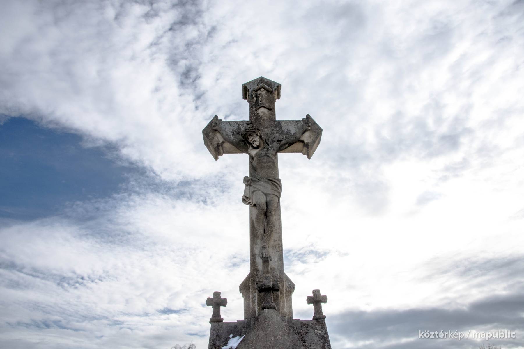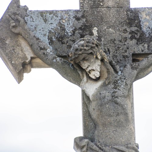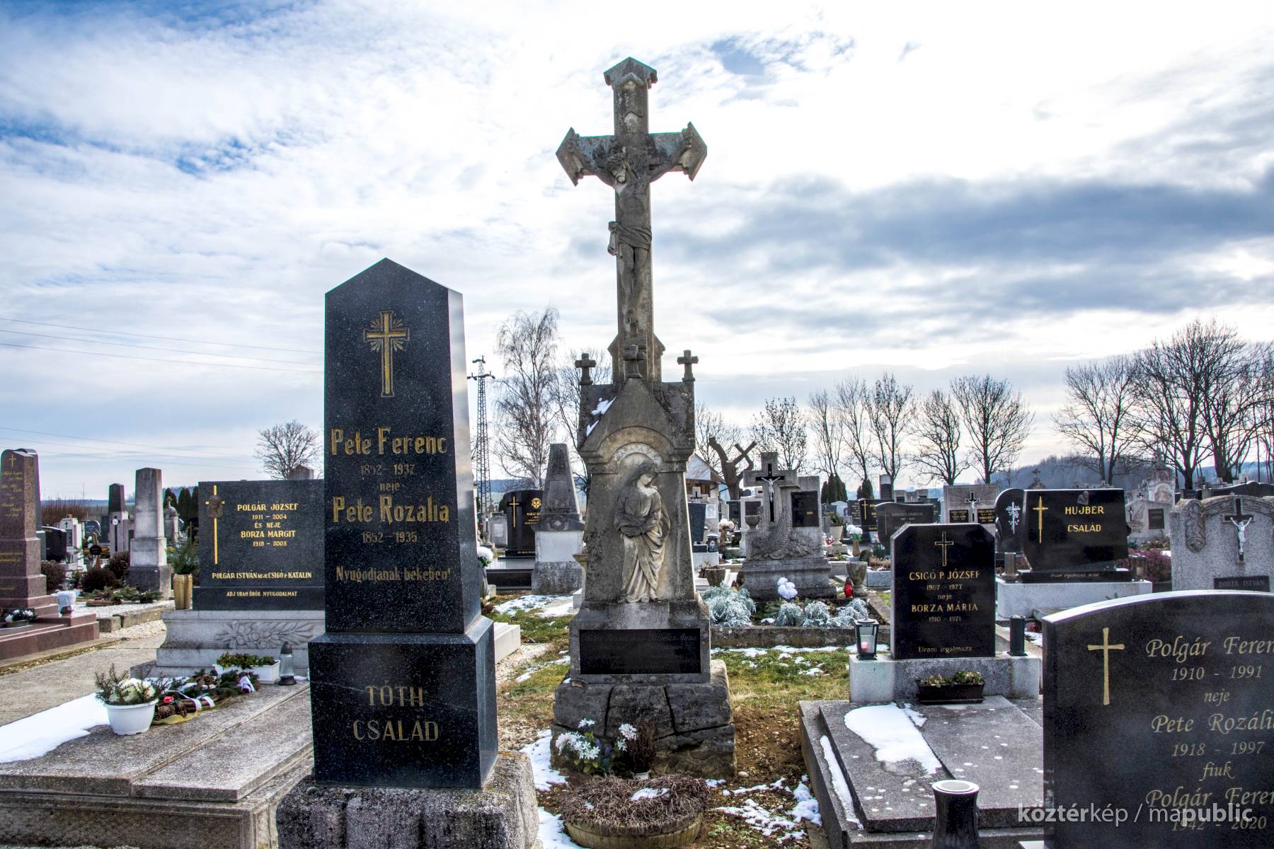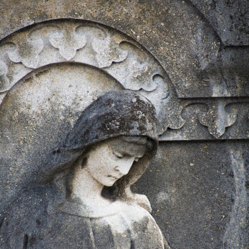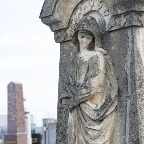 A Hulcz család síremlékén a megfeszített Krisztust ábrázoló feszület alatt a Fájdalmas Anya alakja áll.