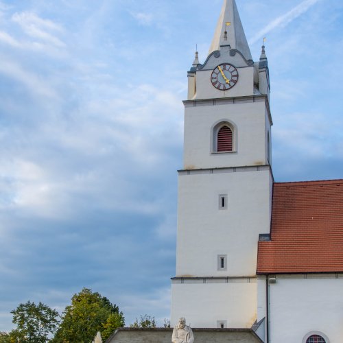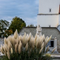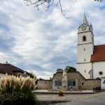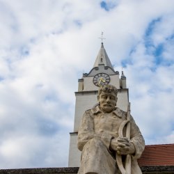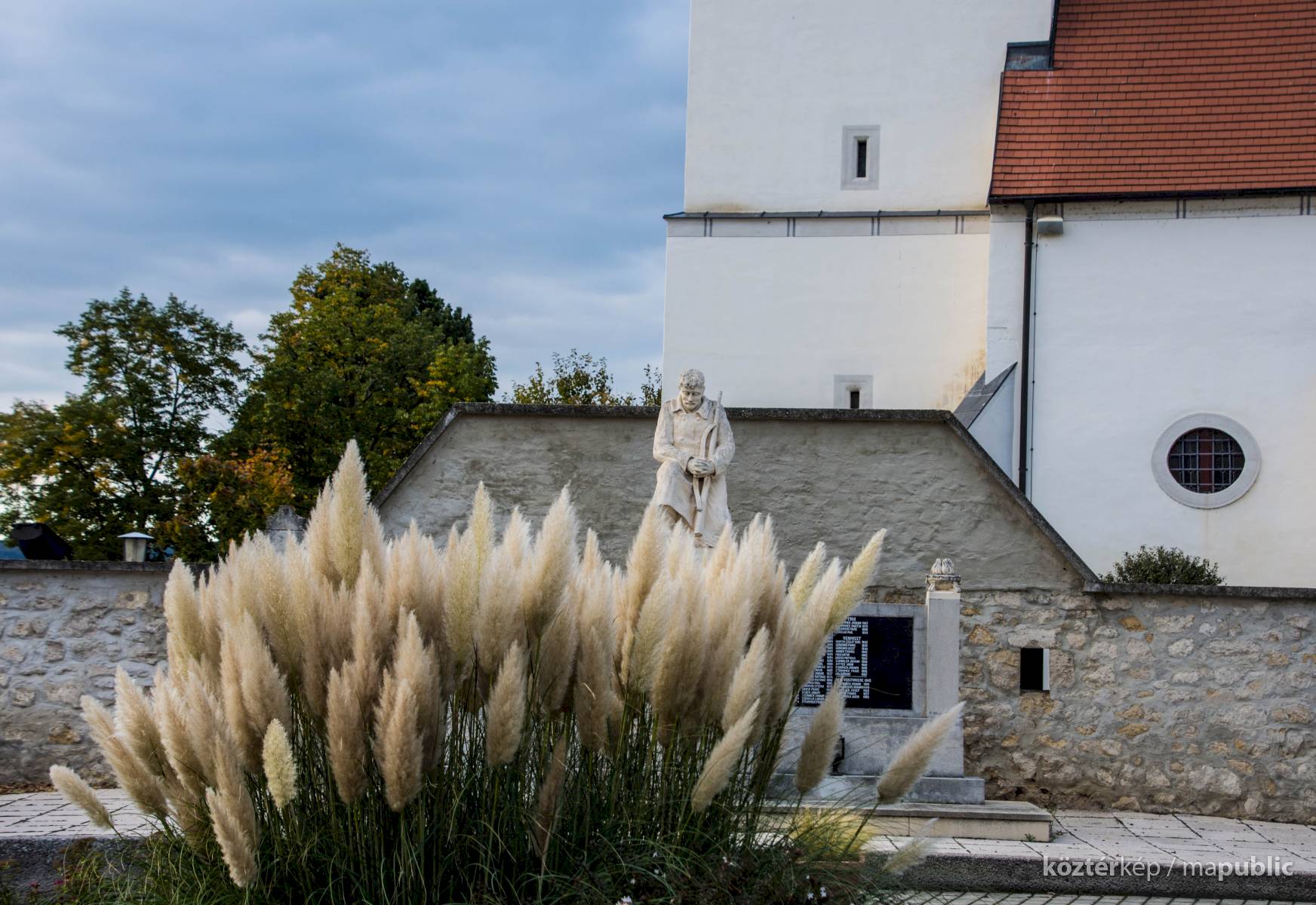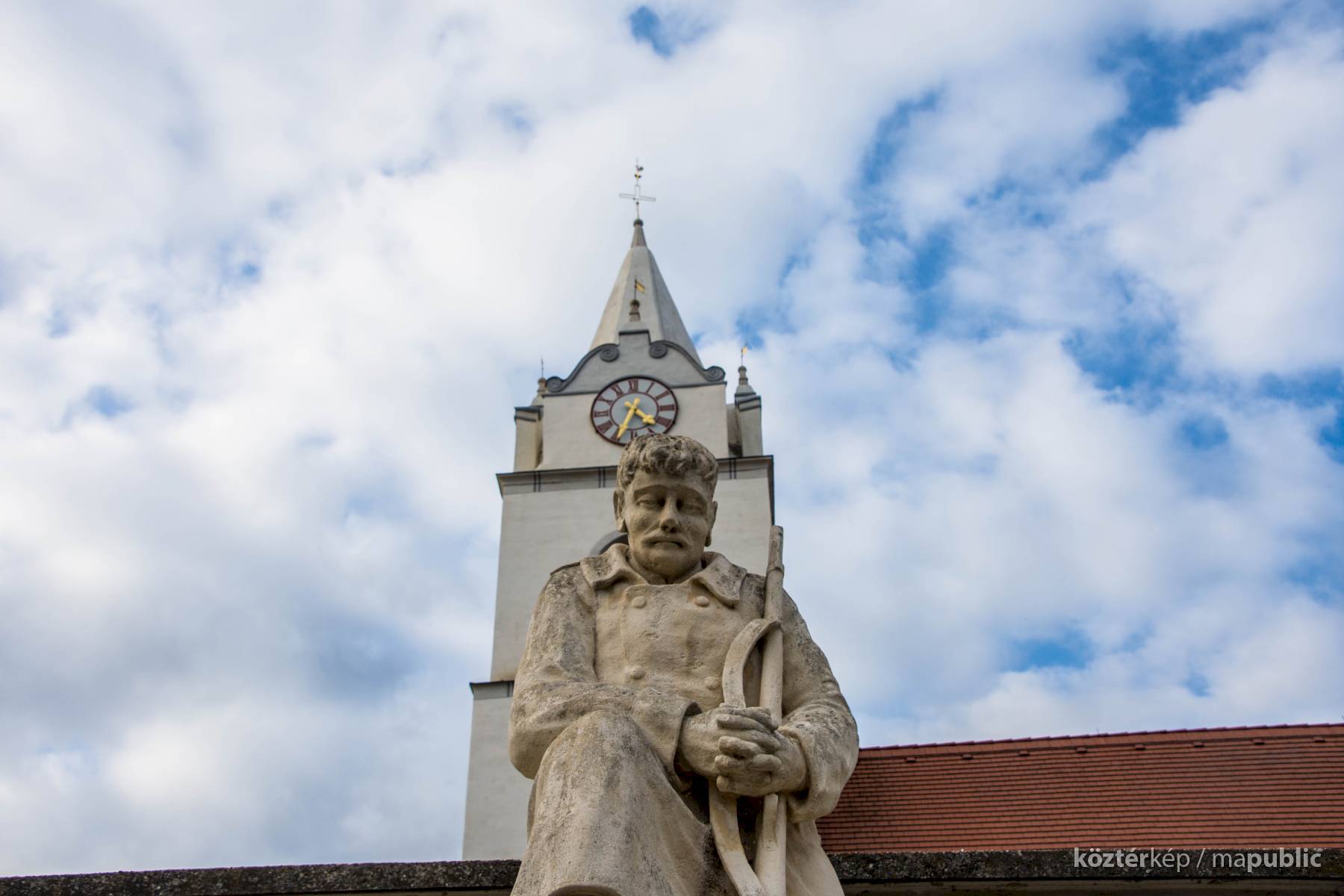 A Hősi emlékmű, amely eredetileg az I. világégés áldozatainak emlékére készült a templom előtti téren látható.[1]