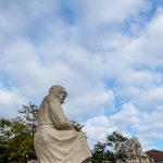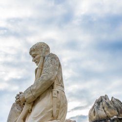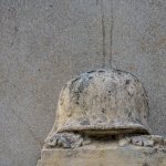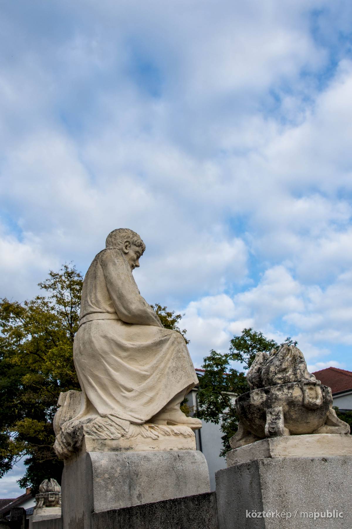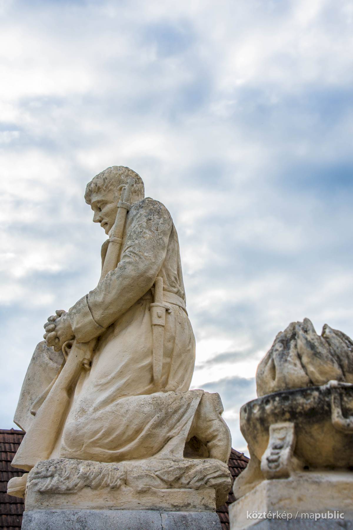 Az emlékmű központi alakja egy térdelő I. világháborús katona.