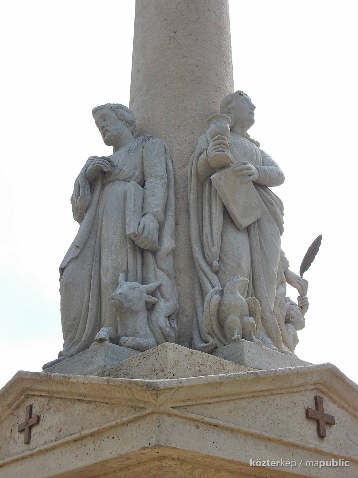 A homokkőből - Kleisch Miklós által - készült alkotáson, felállítása óta egyszer végeztek szakszerűtlen felújítást. A műemlék szoborcsoportot 2021-ben áthelyezték a templom melletti területre, ahol Rákos Péter kőfaragó helyben végezte el a felújítást. A Szentháromság-oszlopot kovácsoltvas kerítéssel vették körbe, és padokkal pihenőhelyet alakítottak ki. Avatására 2021. december 4-én került sor.