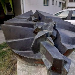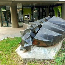 Csíkszereda történelmi központjában a Csíki Székely Múzeum/Mikó vár és a Központi park között lévő Nicolaie Bălcescu úton található CEC Bank takarékbank székháza előtt áll ez az absztraktizált mű. A vízszintes karakterű, széles plasztika kissé megdölt helyzetben található. Változatos, szögletes elemek, melyeket a mű közepéből merőlegesen áttörnek más cikkcakkos strukturák, mintha a földből előtörne a felfakadt víz. Egy életadó forrás realitástól elrugaszkodott plasztikai ábrázolása. A nevezett takarékbank megépülte, átadása után helyesték el ezt a hangsúlyos szobrot, 1998 tavaszán, mintegy szimbolizálva a takarékosság, gazdaságosság értékét, forráserejét. A műnek avatási eseményéről nem tudunk, a korabeli sajtóból, a rövid hírek oldalán értesülünk csupán, hogy már áll ez a köztéri mű. A helyi Botár László képzőművész és Nagy Ödön szobrász alkotása.