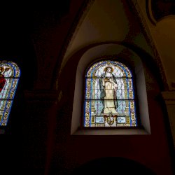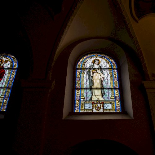 Ilyenek azok az üvegablakok, melyeket 1909-ben Rudolf Nagl bécsi üvegműves készített, amelyek a Szűz Mária mennybevétele titulusú ősi templomban láthatók.[2]