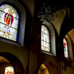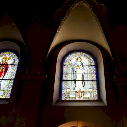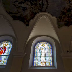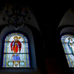 Ilyenek azok az üvegablakok, melyeket 1909-ben Rudolf Nagl bécsi üvegműves készített, amelyek a Szűz Mária mennybevétele titulusú ősi templomban láthatók.[2]