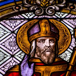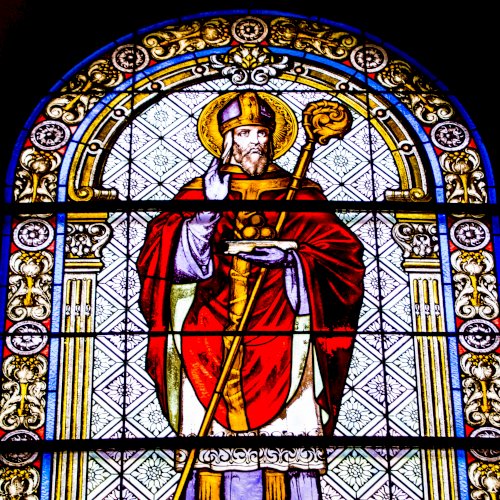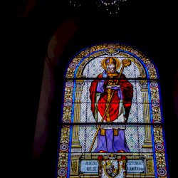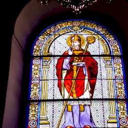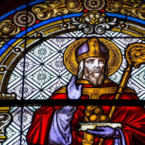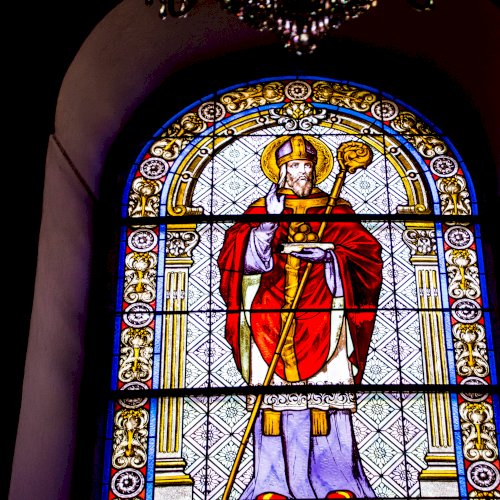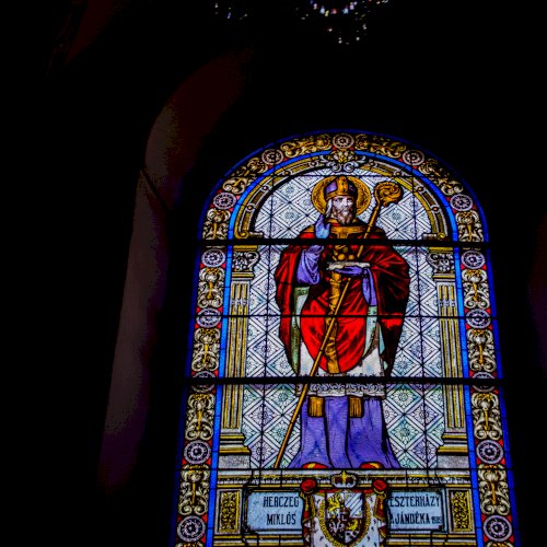 Herceg Esterházy Miklós az üvegablakra védőszentjét, Szent Miklóst rendelte meg.
