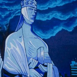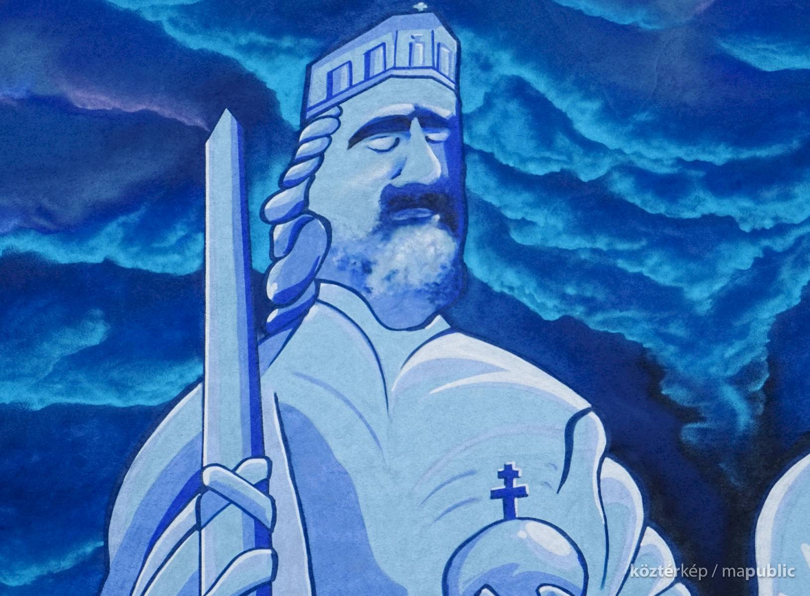 Ebben a sorozatban több murália is készült, a sorrendet követni nem könnyű. A téma itt komoly, hiszen a Vár frekventált pontján 1938 óta áll modellt az a alkotás, ami a most megvalósuló falfestmény alapja.