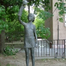 A Bábozó frekventált helyen a színház mellett került elhelyezésre, igaz kicsit ránőtt a mellette álló fa.