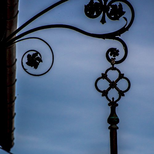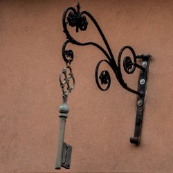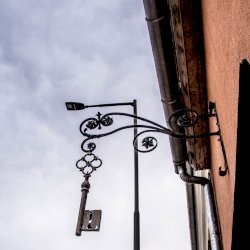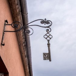 Bár a vasból készült kulcs, akár lakatosműhelyre is utalhatna, itt minden bizonnyal szálláshelyet hirdet.[2]